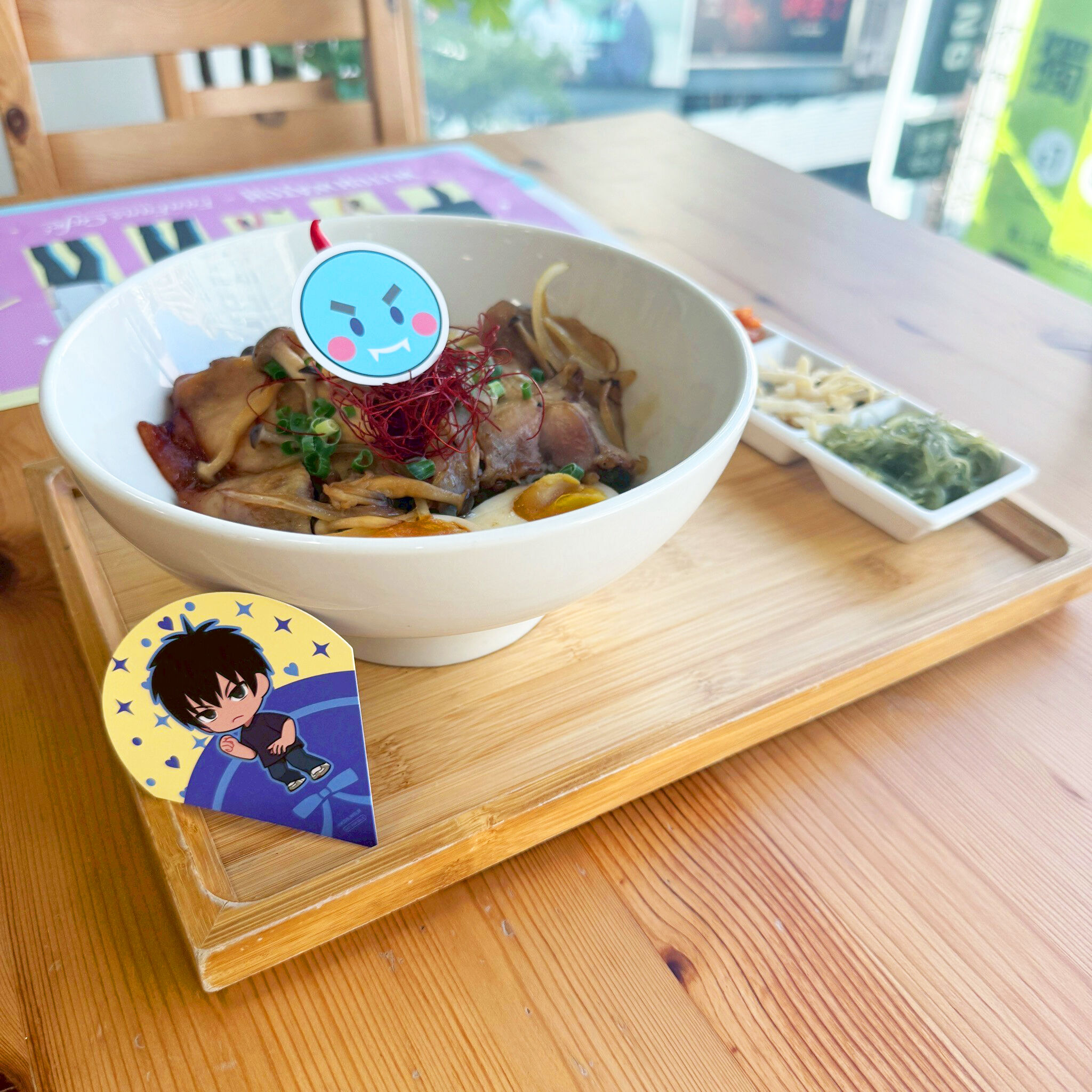 乙木守仁|鬼艮術照燒雞腿飯+守護者藍光氣泡飲:溫暖而可靠的守仁,以濃厚照燒雞腿排搭配紅椒絲點綴,展現守護者的堅毅;清爽藍色氣泡飲則象徵他沉穩溫柔的一面,入口清涼、餘韻安心。