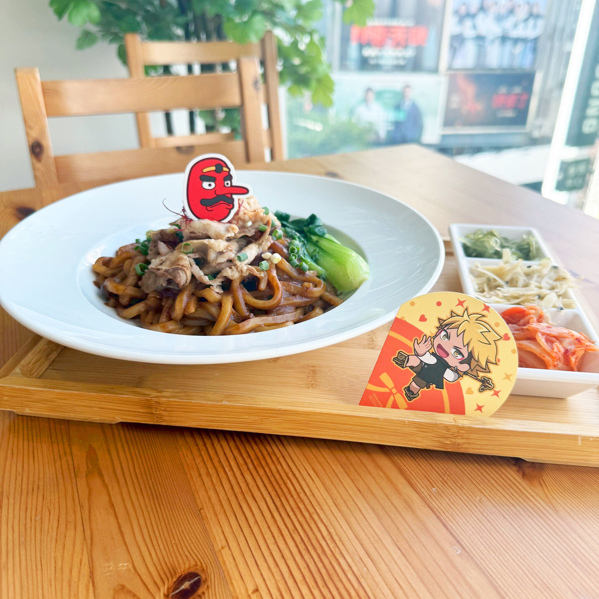 風祭監志|天狗山伏味噌烏龍炒麵+天狗蜂蜜柚子茶:以天狗血統為靈感,結合濃厚味噌與清甜柚香。烏龍炒麵香氣誘人、層次豐富,蜂蜜柚子茶則如山風吹拂般柔和,就像監志外表搞笑、內心卻細膩的反差魅力。